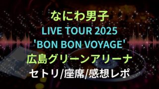 音楽 なにわ男子ライブ2025広島のセトリや座席に感想レポまで 『なにわ男子 LIVE TOUR 2025 'BON BON VOYAGE'』のアリーナツアーが、新潟公演を皮切りに全国9都市・全43公演(2025年7月から11月)で開催中です。MCではファンとの距離が近く、ユニット曲やライブならではのア... 2025.09.17 音楽
