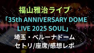 音楽 福山雅治ライブ2025埼玉のセトリや座席に感想レポまで【35th】 7年ぶりのドームライブ「35th ANNIVERSARY DOME LIVE 2025 SOUL」が、大阪・埼玉・福岡の3都市6公演が開催されています。【デビュー35周年】のスペシャルライブで更に期待大ですね!前回の大阪公演では、購入したば... 2025.09.03 音楽