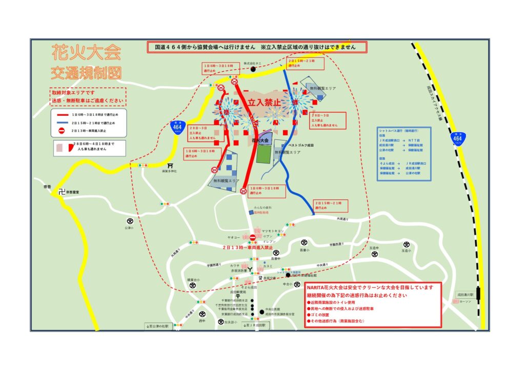 成田花火大会2025の交通規制はこちらです。