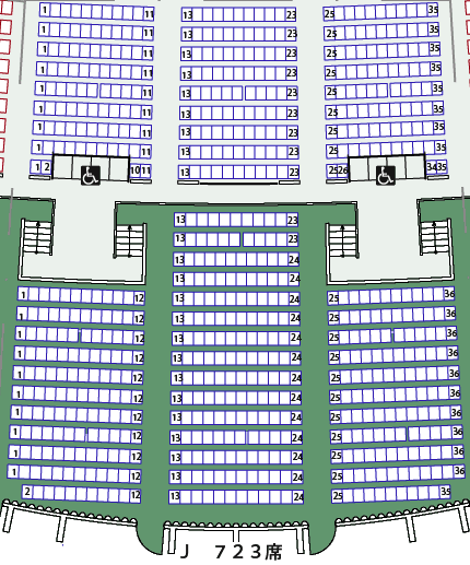 ●ステージ構成によって座席配置(ブロック割り)が大きく変わるのが特徴。
